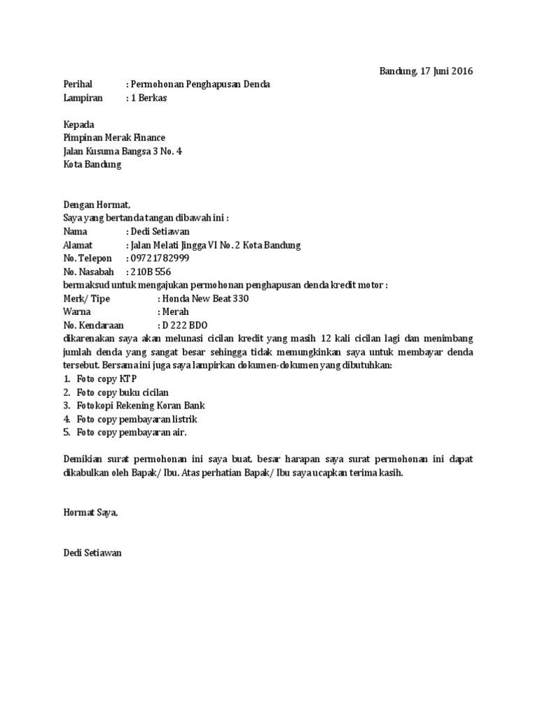 Ada kalanya ketika kita sekolah, kuliah, bekerja atau lainnya dalam lingkungan sosial bermasyarakat baik itu di sekolah, kampus, kantor atau lingkungan kedaerahan, kita akan dihadapkan dalam situasi tidak dapat mengerjakan sendiri dan memerlukan bantuan, pertolongan, izin. Demikian surat permohonan ini saya ajukan untuk digunakan sesuai dengan kepentingannya. Related images with surat permohonan pelunasan pinjaman bank. Memohon pinjaman dengan bahagian pinjaman perumahan. Kalian bisa contoh surat permohonan percepatan pelunasan berikut ini atau. Jika anda sedang mencari informasi terkait contoh surat permohonan. Margonda raya, depok, jawa barat. Besarnya bunga gadai bpkb motor di pegadaian 2020. Pinjaman bri syariah jaminan bpkb motor. Contoh surat pernyataan non pkp onlinepajak. Contoh surat permohonan kepada bank perihal pencetakan rekening koran dan permintaan surat keterangan bank bank reference. Disini kami akan bahas mengenai surat permohonan mulai cara membuat surat permohonan hingga contoh surat permohonan. Mohon kiranya surat permohonan pelunasan ini agar dapat dibantu untuk dilakukan pelunasan serta keringanan biaya pelunasan sesuai dengan program yang ada.